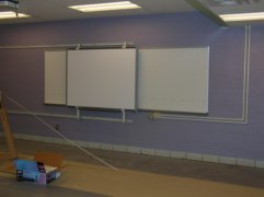 My colleague Allison is happy about her new divider that not only divides her space, but functions as a white board and bulletin board!
